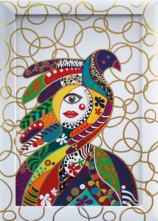 Es zeigt die Schönheit des freien Geistes, des halben Vogelwesens - über die Lüfte - den großen Überblick haben, diesen Spirit, das offene, weite, luftige Denken und gleichzeitig die Buntheit, die vermittelt: Alles ist möglich.